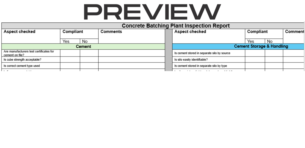 Concrete batching plant Inspection report